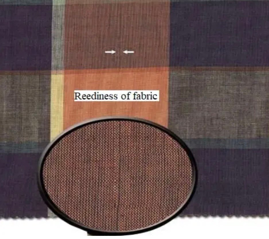 10. Reed Marks, Box Eyes, Rough Surface Causes: Big tension difference upper/lower warp; uneven/high/low frames; warp tension extreme; back beam/drop frame too low; too big/unclear shed; wrong shed timing; hard sizing; too many ends per dent; fuzzy sizing sticking; thick/uneven reed dents; too dry mill; uneven weft unwinding. Fixes: Even tensions, level frames, soften sizing, correct reed/dent specs, control humidity.