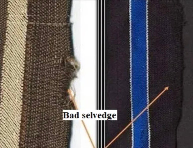 13. Fuzzy Edges, Towel Edges Causes: Low weft tension; wrong edge threading; wrong edge shed height/timing/clarity; loose/squeezed reed dents; wrong temple position (high/low/back). Fixes: Raise weft tension, correct threading/timing, fix reed/temple.