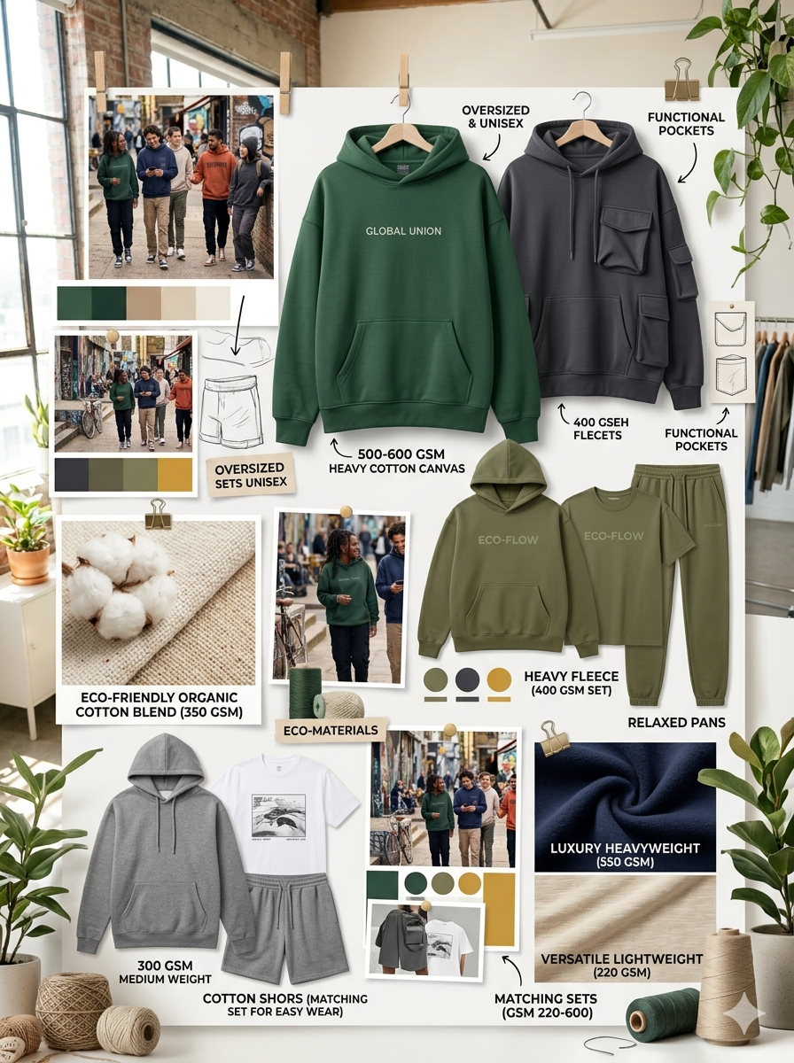 - Matching Sets: Coordinating hoodies with lighter or mid-weight t-shirts in complementary designs and weights.