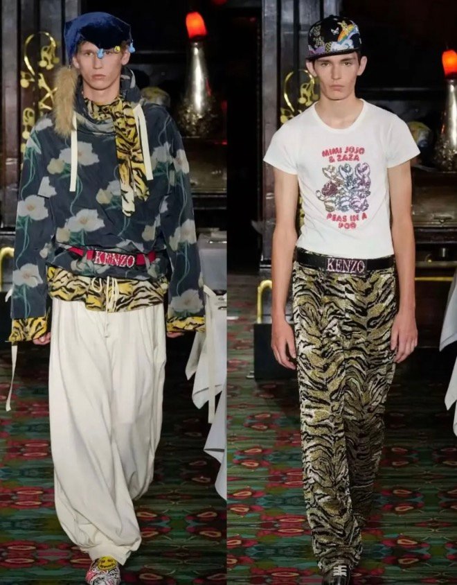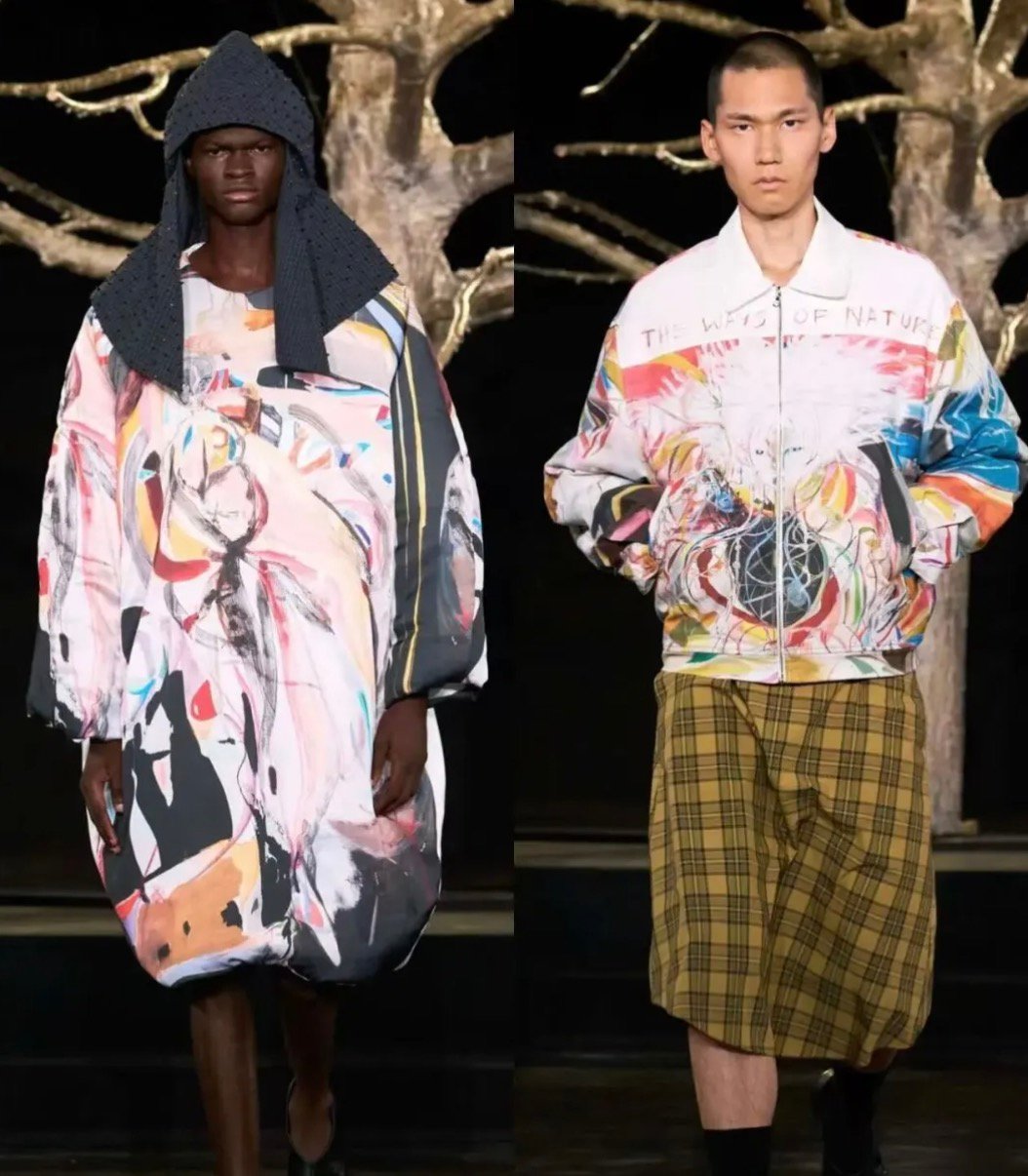 Under NIGO’s direction, Kenzo’s “Club Kenzo” elevates graffiti via punk subculture nods, blending Italian tailoring with Japanese silhouettes. Reviving Kenzo Takada’s rose motifs alongside 90s florals, stars, and checks creates psychedelic visuals. Models hand-draw with markers for improvisational rebellion, turning production norms upside down—each piece a one-of-a-kind artifact.