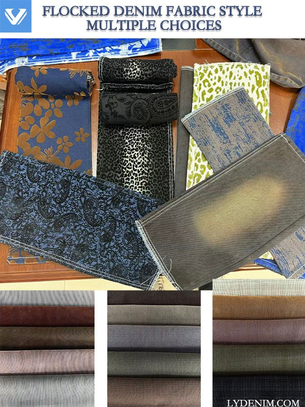 Flocked Denim Fabric Style Multiple choices