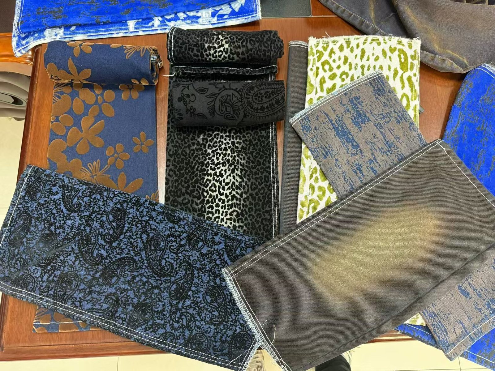 Flocked denim has evolved far beyond basic solid colors—today’s versions bring dramatic texture, bold personality, and endless creative expression to classic denim. By applying short colored fibers (nylon, polyester, or viscose) via electrostatic flocking, we create a plush, velvety 3D surface that feels luxurious yet retains denim’s legendary toughness. From subtle vertical stripes to wild leopard and camouflage motifs, flocked denim Style is redefining streetwear, premium casual, and even high-fashion pieces in 2026.