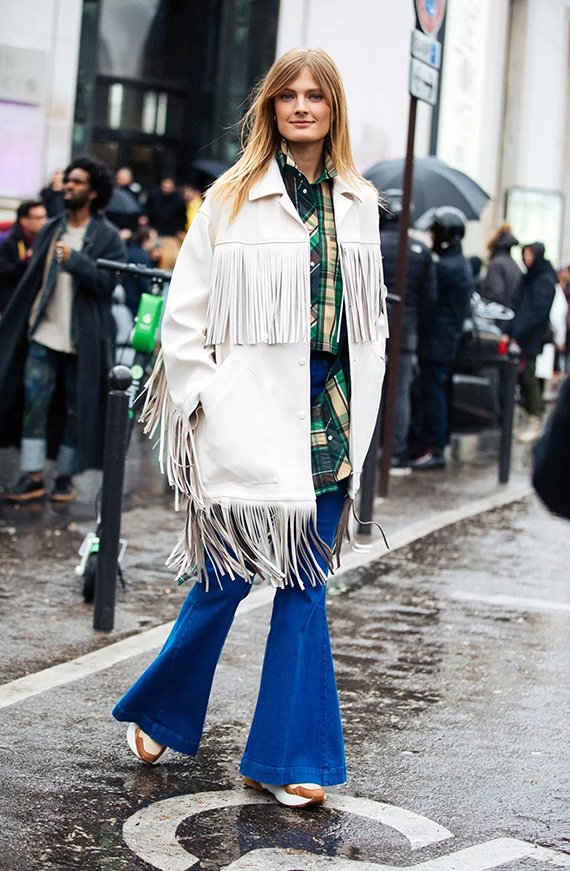 Quand il s'agit d'ambiance rétro, aucune pièce ne crie la nostalgie comme jean à pattes d'éléphant. Contrairement aux subtiles poussées des dernières années, tendances denim automne 2025 il s'agit de cloches à jambes larges audacieuses et dramatiques de style années 70 qui font un retour en force.