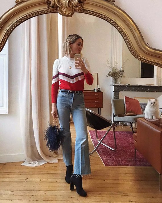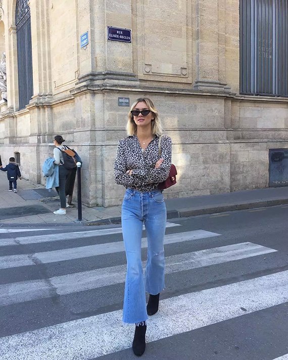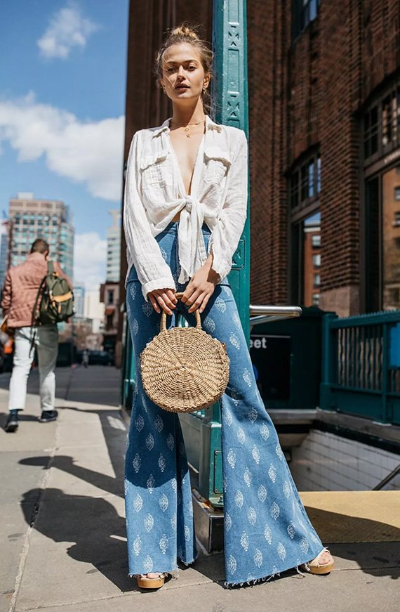 Les pantalons pattes d'éléphant sont également un incontournable de la mode française pour une élégance romantique et décontractée. Portez-les avec des cardigans grand-père, des t-shirts rayés ou des chemises boutonnées impeccables pour un look impeccable. chic français une esthétique fraîche pour la saison : simple, sophistiquée et tellement photogénique.